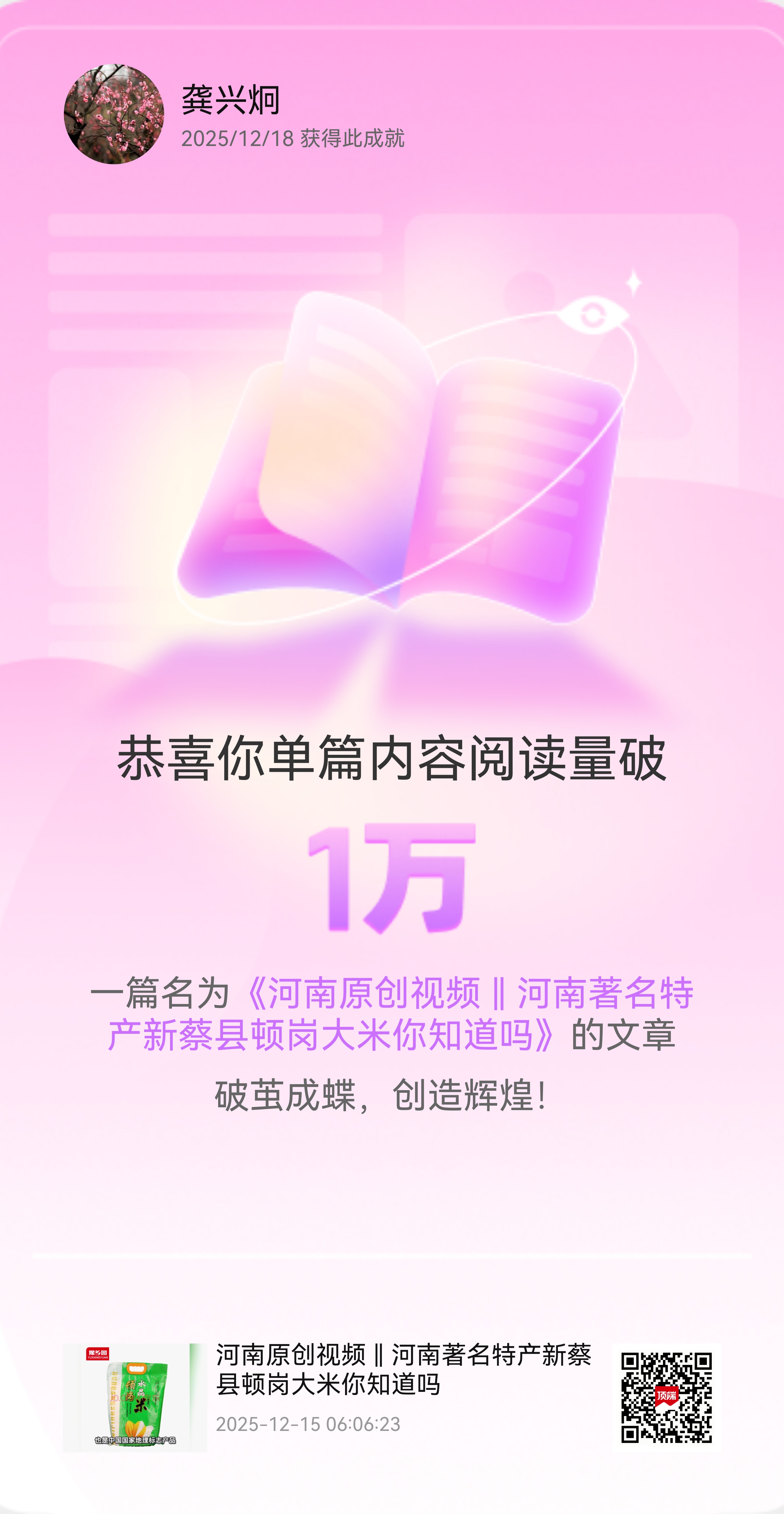 我在頂端單篇閱讀量破10000啦!