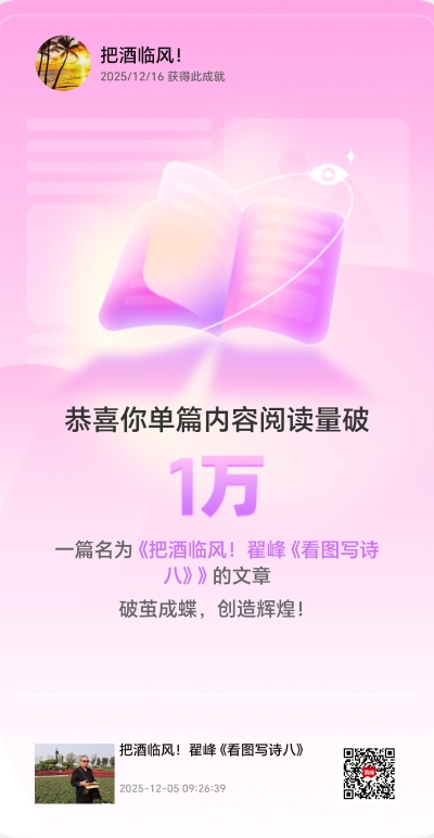 翟峰老師以半世閱歷為筆,以家國情懷為墨,寫下這組凝練厚重的詩作。從人生坎坷中的拼搏堅守,到對后輩錘煉成長的期許;從虛幻夢境的警醒,到唯物務實的篤定;再到采菊品茗的雅趣、銀杏饋贈的感恩,每一首都藏著歲月沉淀的智慧。詩句質樸無華卻字字鏗鏘,既見個人命運與時代的交織,也顯老黨員的初心與風骨。讀之,如聽長者絮語,于平實中見赤誠,于淺白中藏深韻,盡顯生活本真與生命力量。