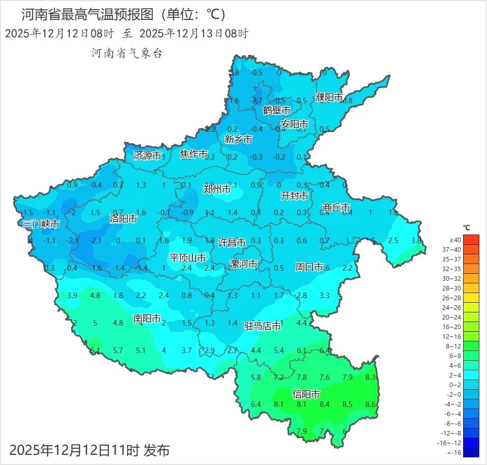 伴隨著強冷空氣抵達河南,12月11日7時至12日7時,全省大部地區出現6到7級極大風,新鄉、焦作、濟源、三門峽、洛陽、鄭州、許昌、南陽等地局部8到10級。