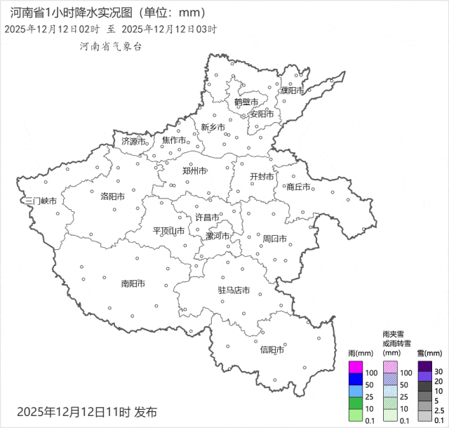 今天下午到夜里,全省陰天,黃淮之間大部有中雪,其中南陽、駐馬店南部小雨轉雨夾雪或小到中雪,許昌南部、平頂山東南部、漯河、駐馬店西部和北部、周口西部部分縣(市、區)有大雪,局部暴雪;信陽小雨轉雨夾雪或小到中雪;其他縣(市、區)有小雪。全省偏北風轉偏西風4級左右,陣風6到7級,西部、西北部局部8到10級。