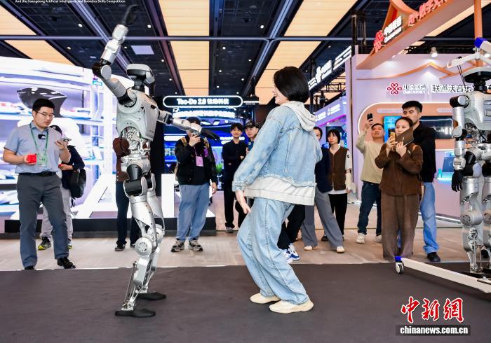 12月12日,2025年粵港澳大灣區人工智能與機器人產業大會暨廣東省人工智能與機器人技能大賽在廣州舉行。圖為人形機器人亮相。 2025XAIR大會組委會供圖