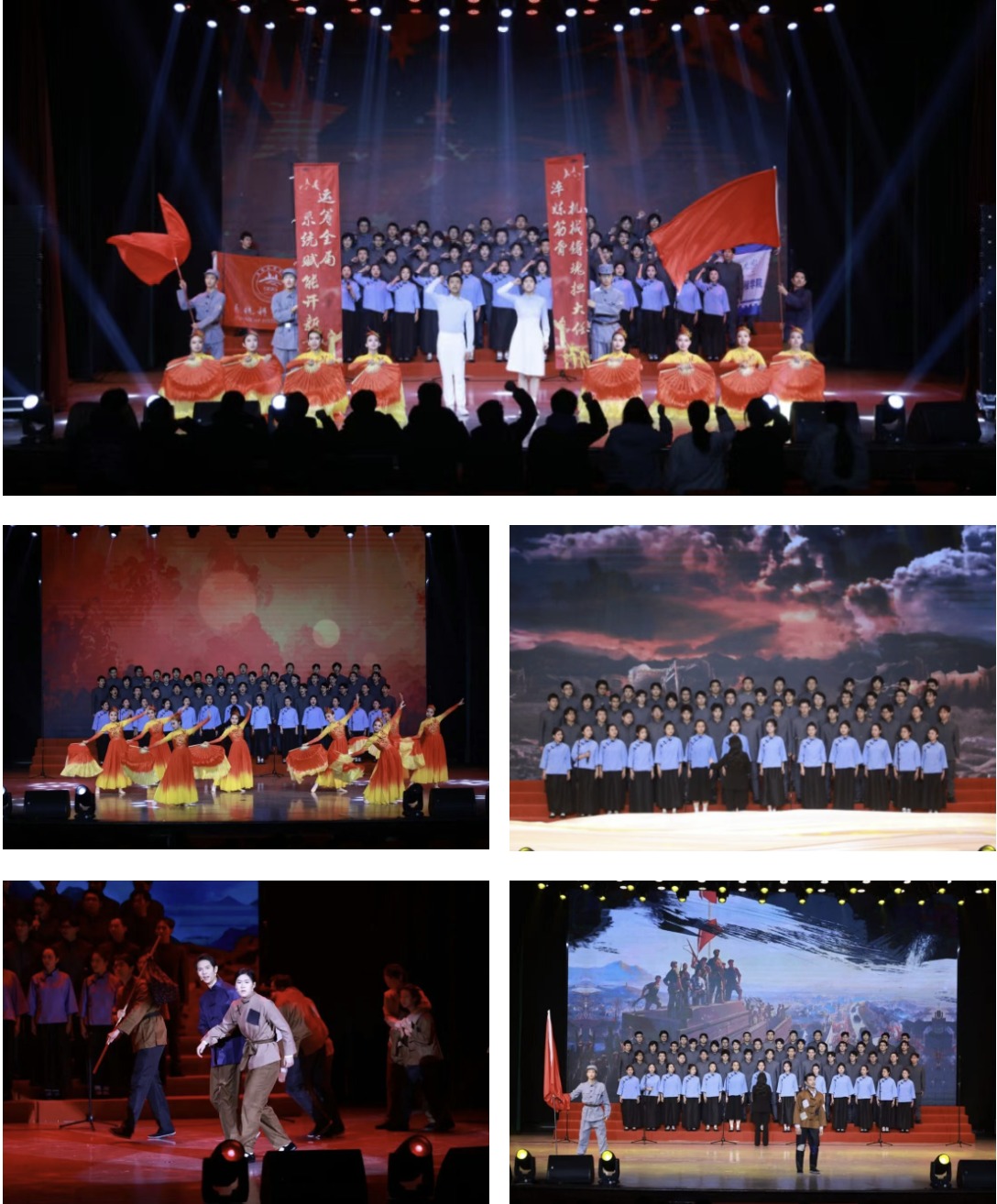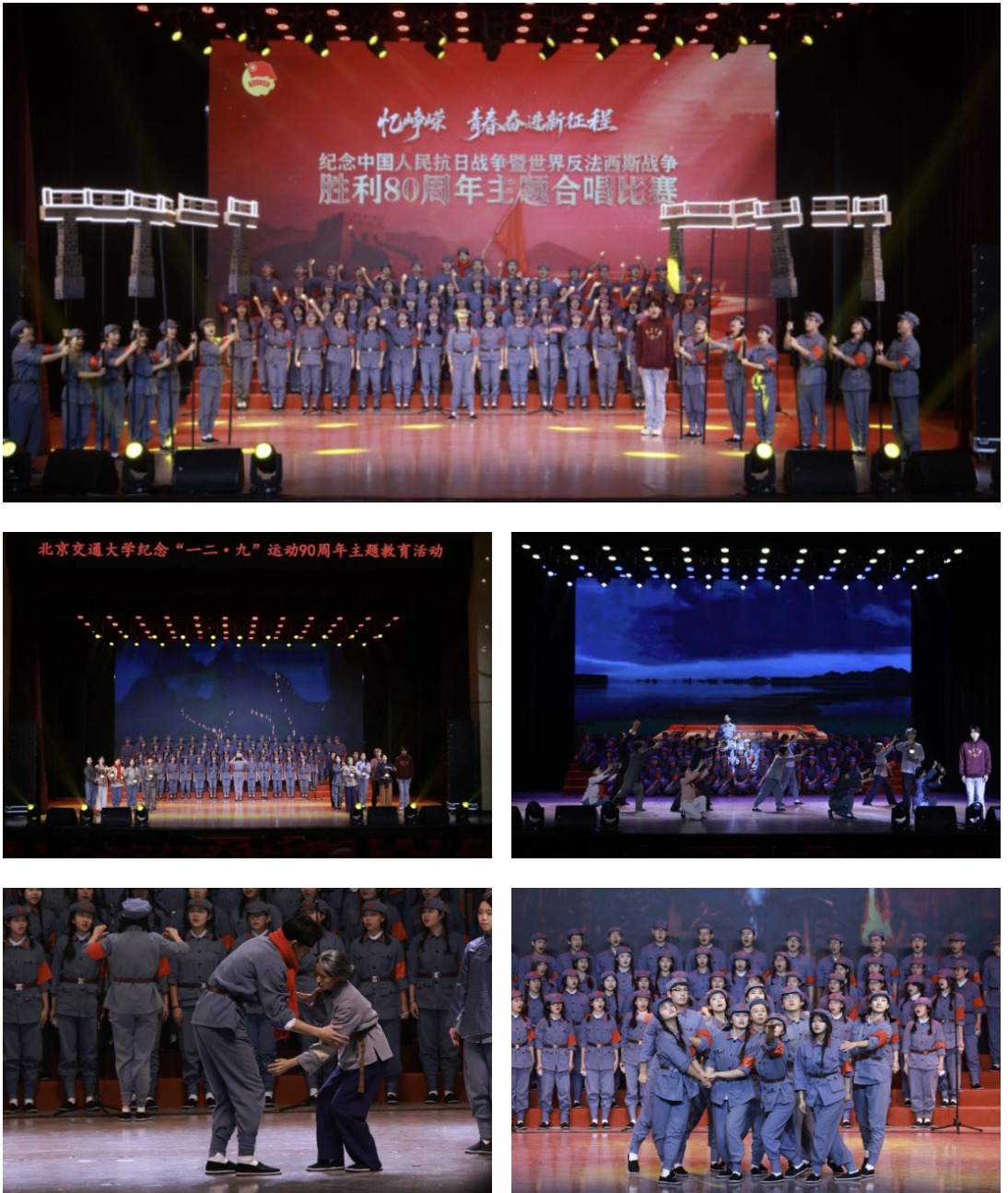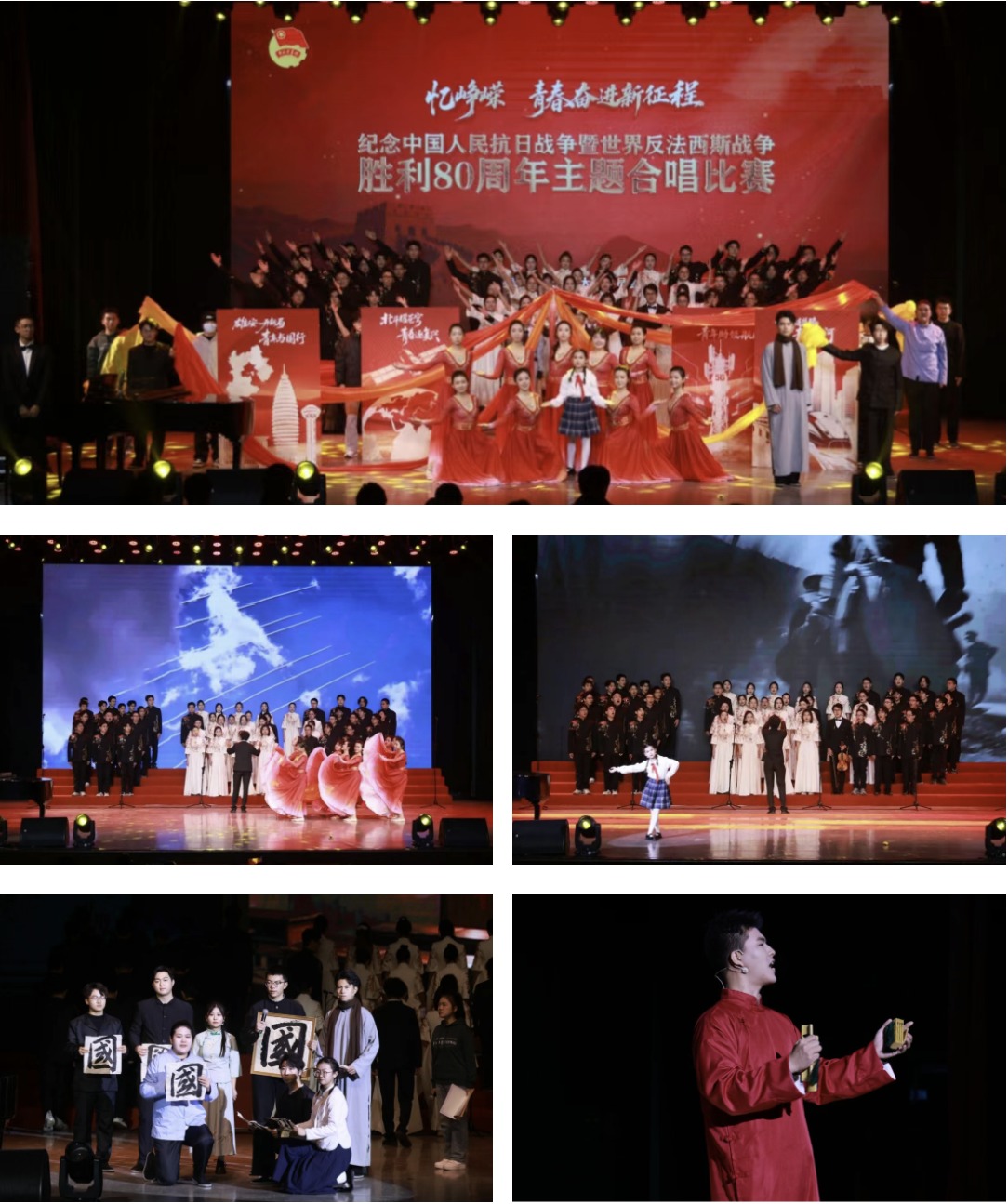 本次合唱比賽采用跨學院組隊方式,組成10個參賽單位。各單位圍繞“烽火憶崢嶸”、“星火照征程”、“薪火啟新程”三大主題篇章,以合唱為主,融合舞蹈、朗誦、情景表演等多種藝術形式,呈現了一場思想性與藝術性并重的視聽盛宴。最終,評審團根據各單位節目的思想性、藝術性、表現力進行綜合評定,評選出一等獎1名、二等獎2名、三等獎3名、優勝獎4名,最佳組織獎若干。