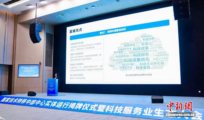 中新網武漢12月13日電 (梁婷 姜勝來 姚坤森)國家技術轉移中部中心實體運行揭牌儀式暨科技服務業生態大會13日在武漢舉行。據會上發布的《湖北科技服務業發展報告2025》顯示,湖北科技服務業邁向規模化、專業化發展階段。