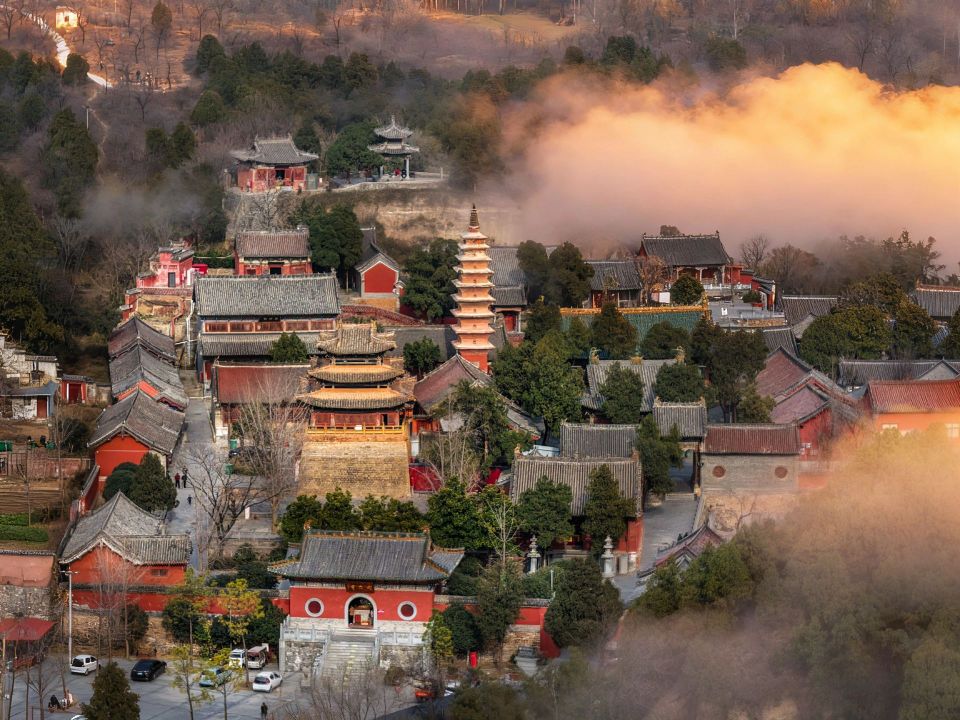 七祖塔作為全國現(xiàn)存六座唐代高塔之一,九層密檐式磚塔造型優(yōu)美,檐角鈴鐸隨風作響;懸鐘閣內(nèi)重達9999斤的宋代鐵鐘,被譽為“中原第一鐘”,鐘聲穿谷越峰、悠遠綿長;中佛殿遵循北宋營造法式建造,“減柱”工藝與八百年未褪的彩繪,盡顯金代建筑的匠心。而寺內(nèi)外現(xiàn)存的146座唐至民國時期的古塔,構(gòu)成中國第三大塔林,磚石雕琢精美,是研究佛教葬制的重要實物。