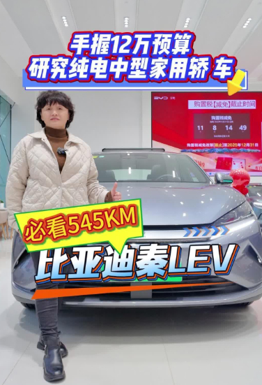 手握12萬預算 純電中型家用轎車必看545KM比亞迪秦LEV