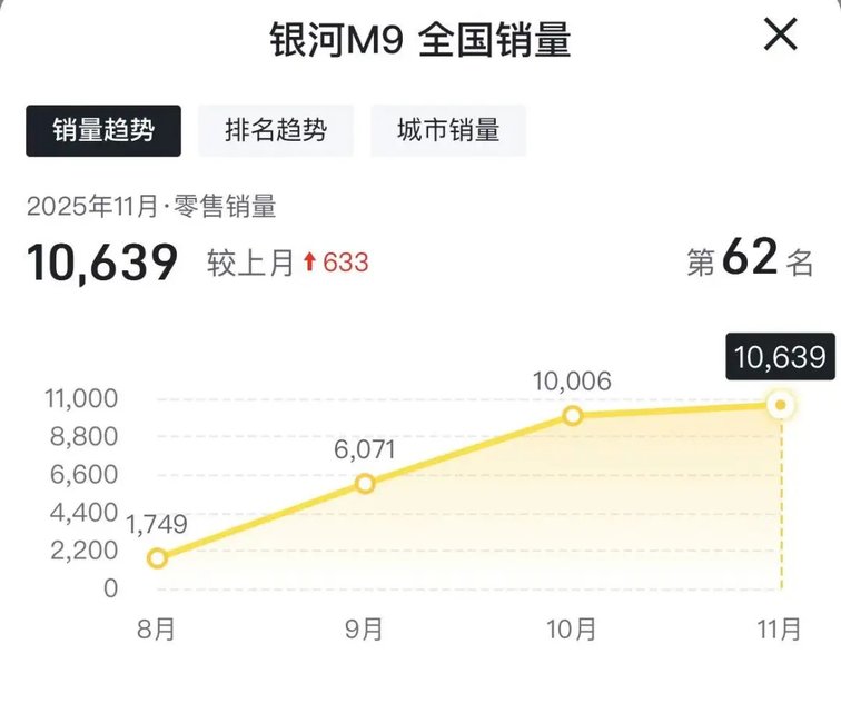二是品牌賦能,吉利銀河品牌 11 月整體銷量同比增長 76%,強大的體系力為 M9 提供了渠道與口碑支撐。