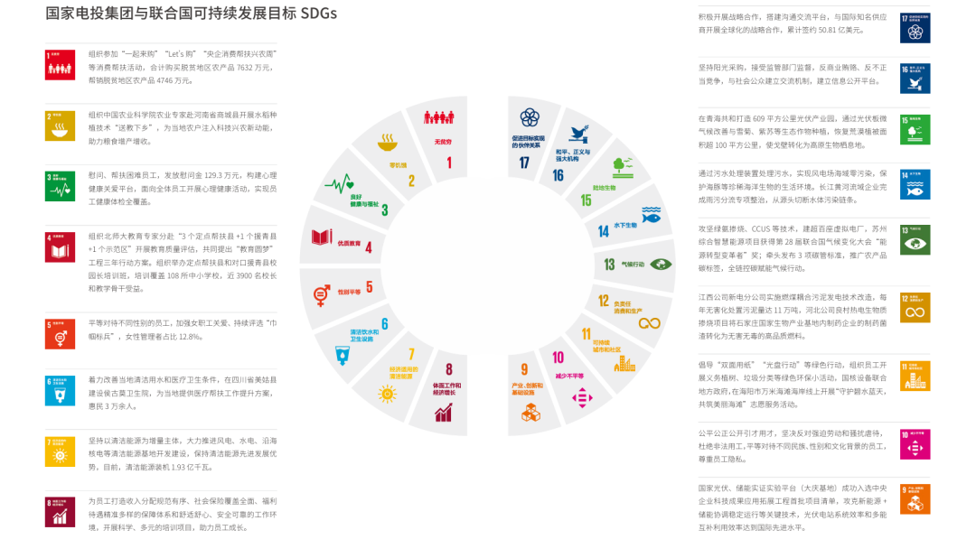 國電投在ESG報告中,清晰展現了如何將聯合國可持續發展目標(Sustainable Development Goals,簡稱SDGs)轉化為系統性的行動路徑。