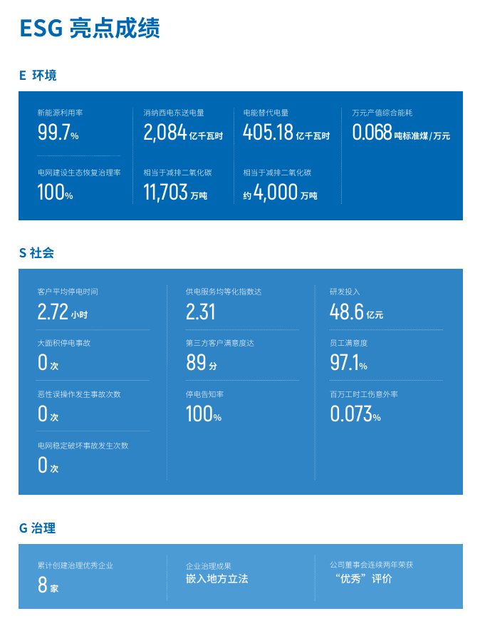 南方電網的ESG報告信息披露,南方電網構建完善了“總部和二級單位社會責任報告-地市供電局等三級單位實踐分冊-總部職能部門專項報告”的社會責任報告體系。