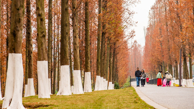 水杉林立,筆直如劍,根植于淺淺的水域之中。它們的枝干呈赭褐色,斑駁中透出歲月的沉靜,樹冠高聳入云,卻又在某個高度悄然收束,仿佛在向天空致意后又謙遜地低垂。秋意漸濃時,葉片由翠綠轉為橙紅,再染成深褐,層層疊疊,宛如大地燃起的一場無聲火焰。而此刻,霧氣正從水面悄然升起,如游絲般纏繞樹干,又似輕紗拂過葉梢,將整片林子籠罩在一種近乎虛幻的柔光里。