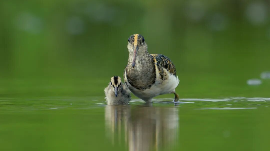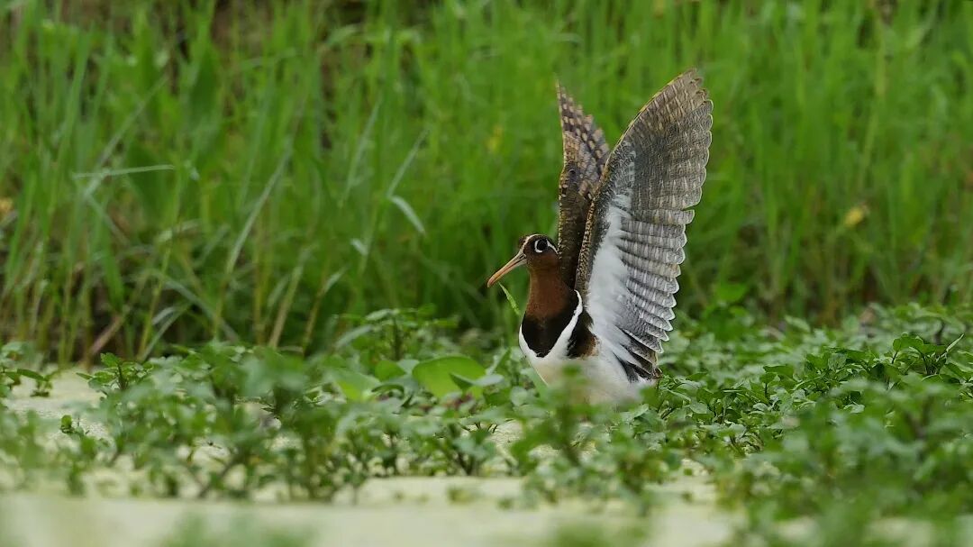 4-10月,拍攝團(tuán)隊開始追蹤記錄彩鷸的蹤跡,并成功捕捉到彩鷸育雛的珍貴畫面。更令人意外的是,在追蹤彩鷸的過程中,拍攝團(tuán)隊還發(fā)現(xiàn)了候鳥黑翅長腳鷸留守南方地區(qū)育雛的場景。要知道,黑翅長腳鷸在南方地區(qū)的育雛記錄極為稀少,此次發(fā)現(xiàn)填補(bǔ)了相關(guān)生態(tài)研究的空白,也從側(cè)面反映出光明區(qū)的山水資源極具優(yōu)勢,為鳥類提供了適宜的繁殖環(huán)境。