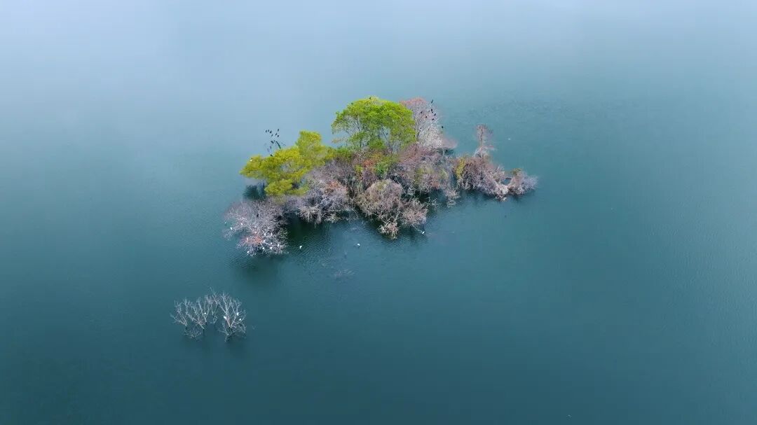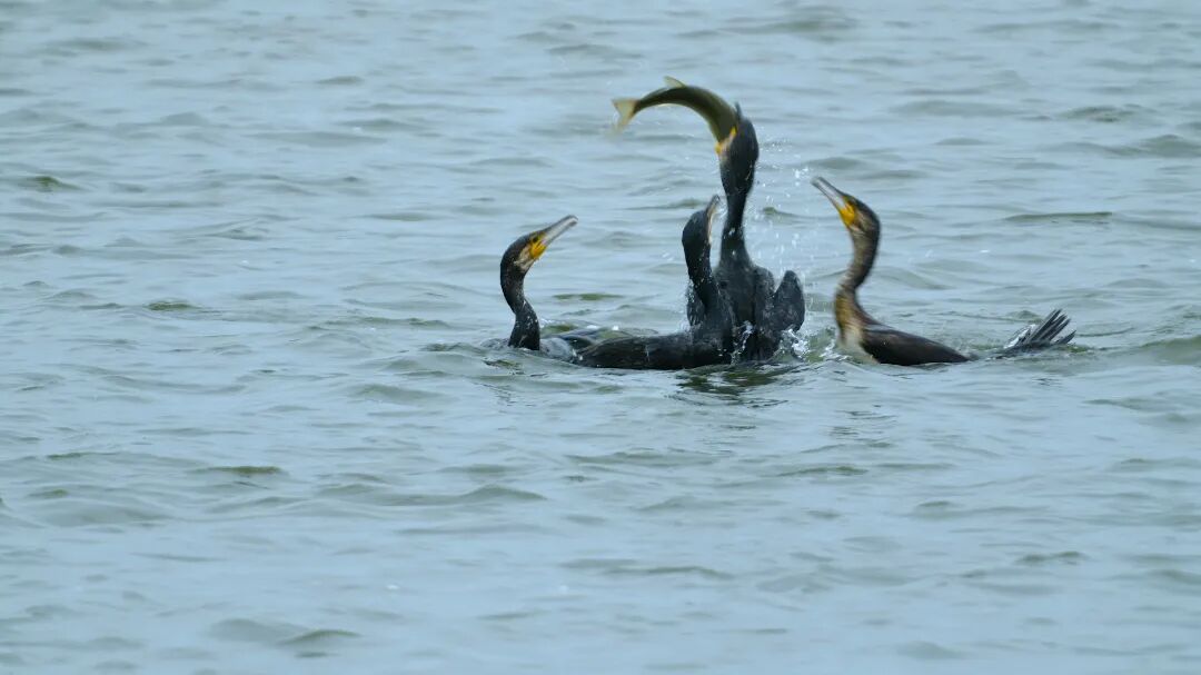 每年10月至次年2月,隨著候鳥南遷,公明水庫(光明湖)都會聚集一定數(shù)量的普通鸕鶿在此越冬。拍攝團(tuán)隊在水庫壩上記錄鸕鶿群在樹枝上曬翼時,驚喜地發(fā)現(xiàn)一只特殊的鳥——它體型與鸕鶿相近,嘴卻又長又尖且?guī)в邢聫潯=?jīng)過反復(fù)比對與專業(yè)鑒定,最終確認(rèn)這只珍稀鳥類竟是國家一級保護(hù)野生動物——彩鹮。彩鹮曾一度在國內(nèi)被宣布絕跡,近年來才零散出現(xiàn)在人們視野中,此前在深圳從未有過野外自然分布的記錄。此次發(fā)現(xiàn),不僅為光明區(qū)生態(tài)保護(hù)成果增添了重磅證據(jù),更將深圳野外自然分布鳥類記錄更新至第439種,意義非凡。