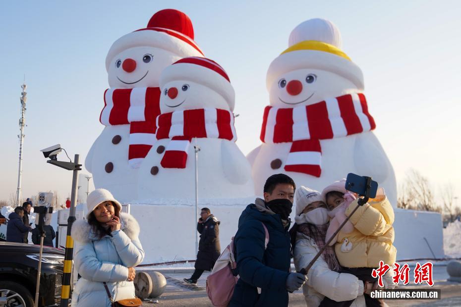 12月13日,黑龍江哈爾濱,雪雕“童話雪人一家”吸引游客打卡。據(jù)了解,第二十七屆哈爾濱冰雪大世界“迎賓先行者”“童話雪人一家”高15米,用雪量近4000立方米,于日前完成雕刻。雪人一家三口戴上了帽子和圍巾,在冰雪的映襯下盡顯喜慶溫暖。