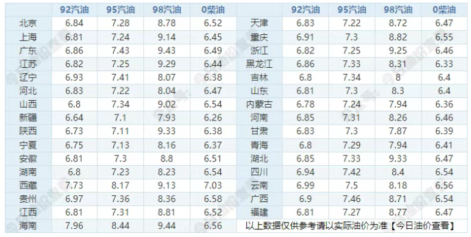 查當(dāng)?shù)刈钚掠蛢r(jià),請(qǐng)點(diǎn)——今日油價(jià)查看