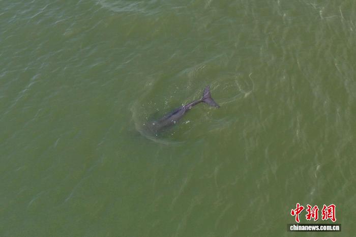 2021年9月3日,江西南昌,一只長江江豚在贛江水域暢游。中新社記者 劉占昆 攝