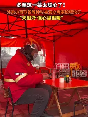 冬至當天,外賣小哥被商家投喂餃子。#冬至吃餃子#外賣小哥辛苦了#愛心商家
