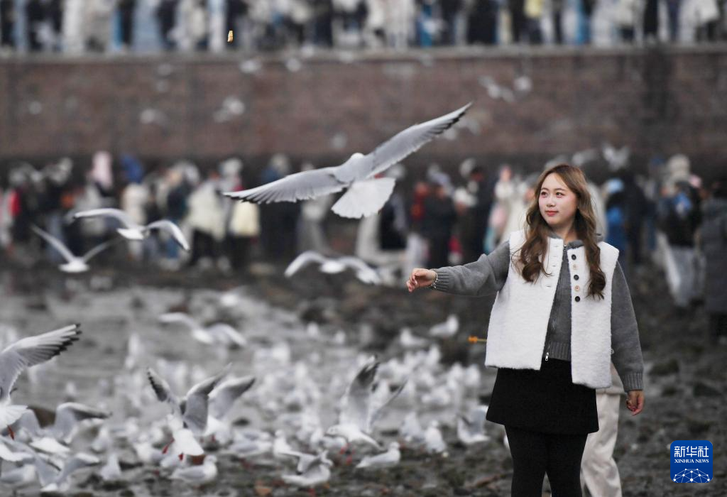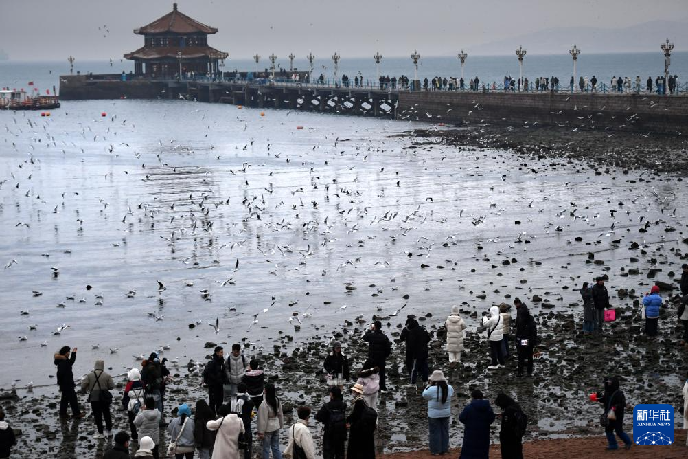 冬日,眾多海鷗聚集在青島棧橋景區飛舞、覓食,成為當地冬季旅游的標志性景觀。