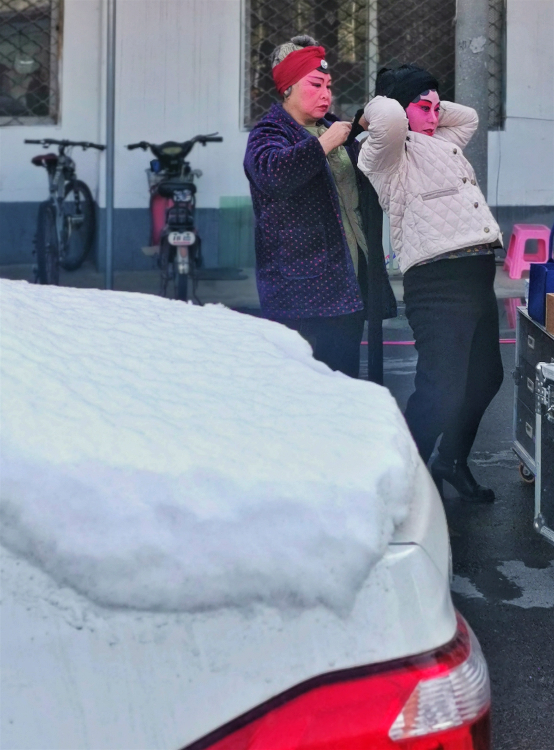 連日來,作為全省“舞臺藝術(shù)送基層”的活動項目,該團(tuán)冒著冰雪嚴(yán)寒把精彩演出送到了一個個鄉(xiāng)村,讓村民在家門口看上了大戲。(李秀中 攝)