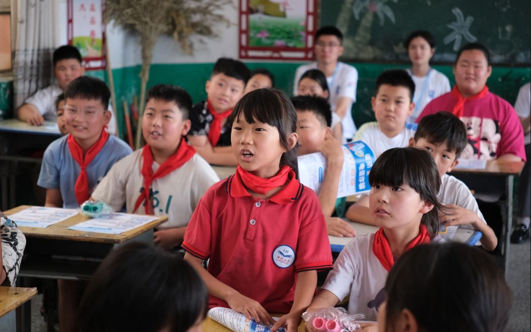 還沒有走到學校的門口,遠遠就看到7、8個扎著紅領巾的孩子正站在學校的牌子下等候著他(她)們的到來“子惠老師!雨生老師!” 幾個穿著補丁校服的孩子跑過來,手里攥著野花,花瓣上還沾著晨露。領頭的小女孩上前一步,向子惠和雨生敬了一個標準的少先隊禮“報告老師,我叫妞妞,是這里的班長,歡迎老師來到我們學校”。