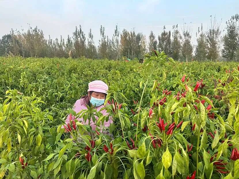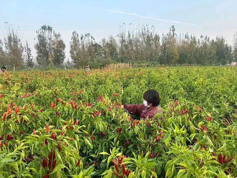 辣椒地里村民正手法嫻熟地采摘著成熟的辣椒。他們中有經(jīng)驗豐富的老農(nóng),也有返鄉(xiāng)就業(yè)的年輕人,臉上洋溢著收獲的喜悅。采摘下的辣椒被迅速裝入專用筐內(nèi),由電動車運往地頭的集散點。