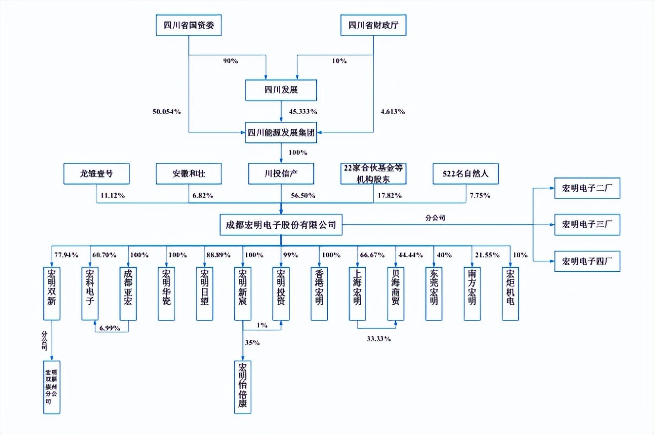 2000年8月25日,實業總公司進行體制改革,由職工持股會及4,526名自然人共同出資,以發起設立方式組建宏明電子;宏明電子股本總額5,940萬股,全部由公司發起人持有。