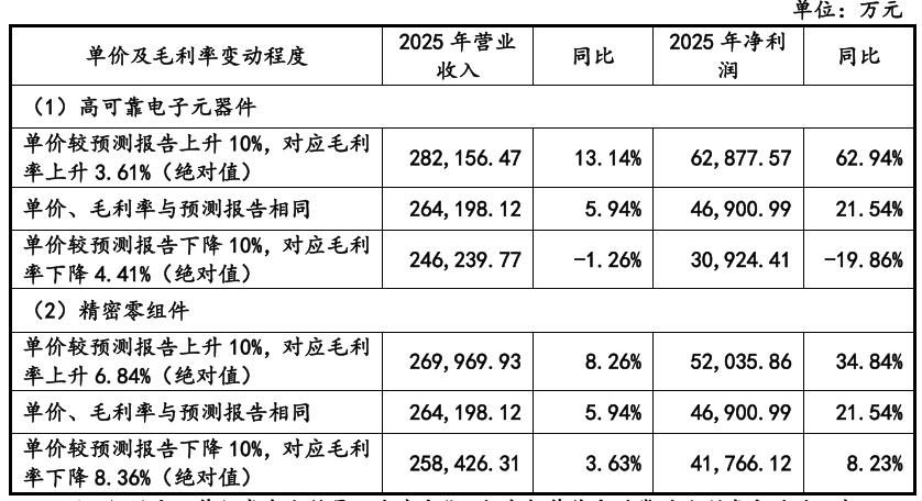 報告期內,公司電子元器件產品以高可靠產品為主,主要應用于防務領域,高可靠產品占電子元器件銷售收入的平均比例為89.41%。高可靠產品中又以陶瓷電容器為主,報告期內陶瓷電容器占高可靠產品銷售收入的平均比例為63.20%。公司經營業績主要受高可靠產品收入變動的影響。