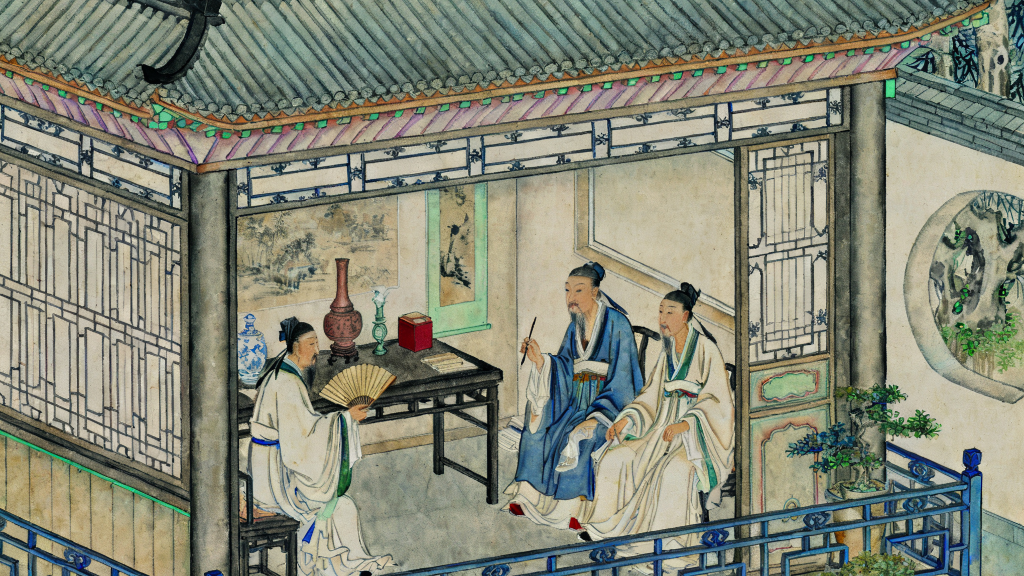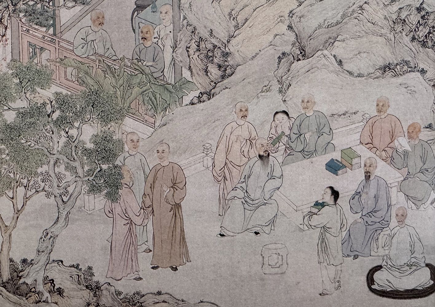 《談藝圖》(局部)雖只是整幅畫作的一部分,卻猶如一扇精巧的窗,讓我們得以窺見那個充滿詩意與才情的藝術世界。畫面之中,人物形象栩栩如生,他們或坐或立,神情專注而投入。畫家以細膩的筆觸勾勒出人物的輪廓,每一條線條都仿佛蘊含著生命的律動,將人物的姿態、神情刻畫得入木三分。