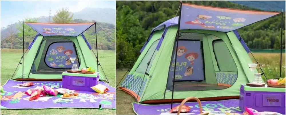 除了食品飲料之外,在沃爾瑪的生活區和玩具區也能看到“山姆的影子”。例如,2024年4月前后,山姆上線了一款聯名迪士尼《玩具總動員》的帳篷,而2025年12月,沃爾瑪也上新了一款聯名迪士尼《玩具總動員》的帳篷。而這兩款帳篷不論是聯名的元素設計、配色和樣式都十分接近。