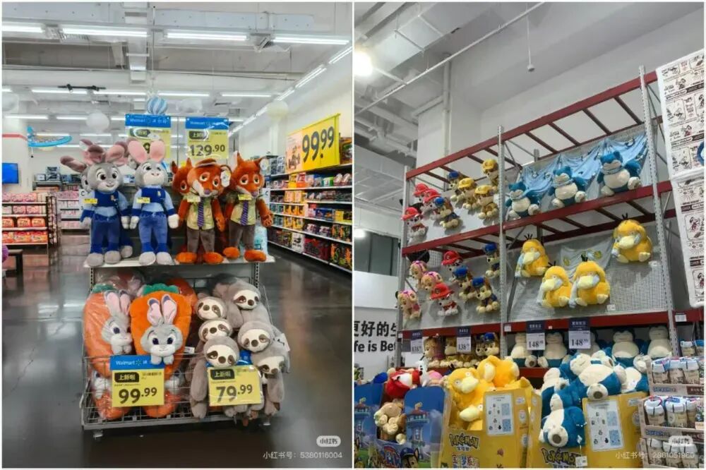 左圖為沃爾瑪玩偶區、右圖為山姆玩偶區