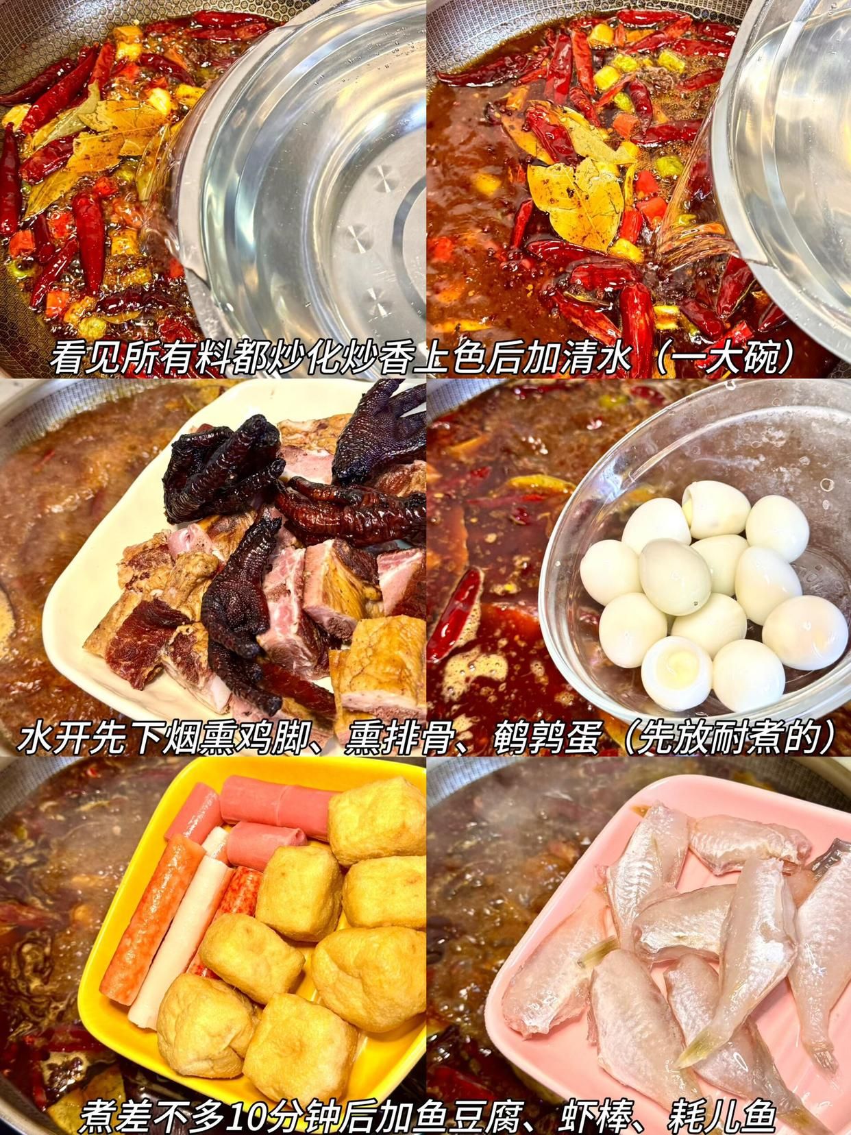 10 分鐘后,把耗兒魚(yú)、鵪鶉蛋、海帶絲、魚(yú)豆腐、蝦棒、脆皮腸放進(jìn)鍋里,繼續(xù)煮 5 分鐘(這些食材煮 5 分鐘剛好,不會(huì)太老,也能充分入味)。