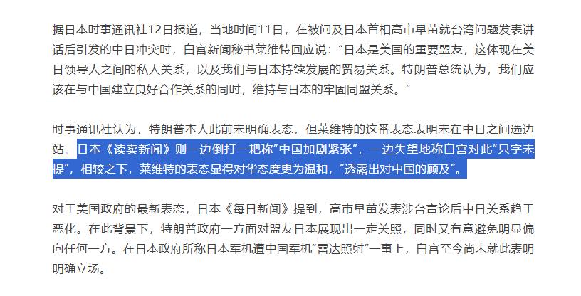 日本時事通訊社更是直接指出,美方這番表態,表明了特朗普政府“未在中日之間選邊站”。
