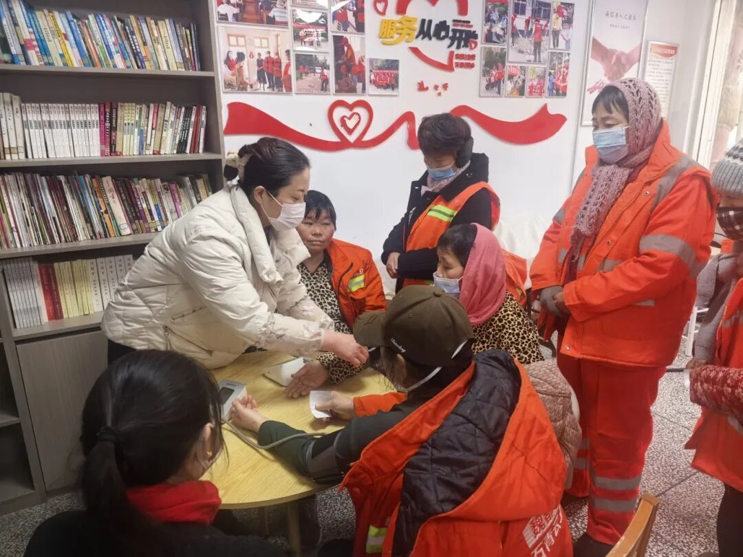 當日,該社區聯合愛心機構免費為轄區環衛工人、外賣騎手等戶外工作者提供心電圖檢測、血壓測量等健康服務。
