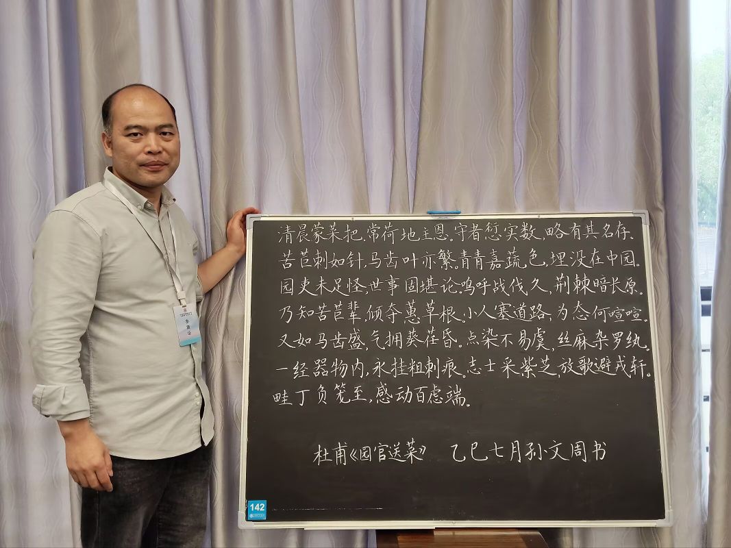 賽事籌備階段,在教務處及文學院領導的鼎力支持下,王建國、孫文周、魏東方等教師組成指導團隊,對參賽師生進行系統性輔導。2025年上半年初賽中,全院師生積極備賽、踴躍投稿,展現出濃厚的書寫熱情與扎實的專業基礎:孫文周、魏東方兩位老師成功入圍粉筆類教師組全國決賽;竇涵等53名同學入圍師范院校學生組決賽,占該組別全國入圍總數的六分之一;桑韶研等5名同學挺進硬筆類大學生組決賽,為后續決賽征程奠定堅實基礎。