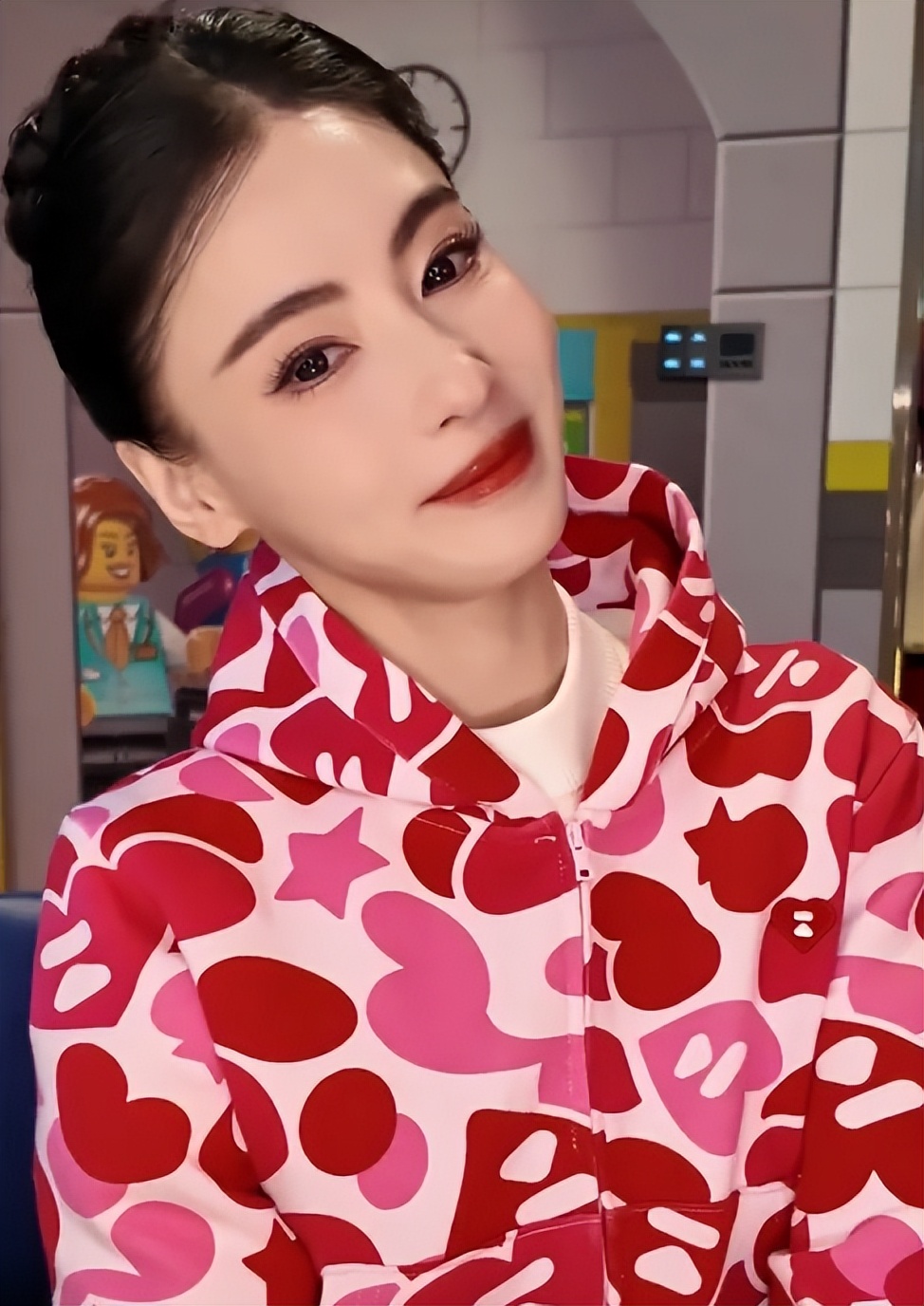 只不過這個鏡頭下的她看起來就有些“不對勁”了,雖然面帶著微笑,但是一眼就能看出是“職業假笑”,并不是發自內心的笑。