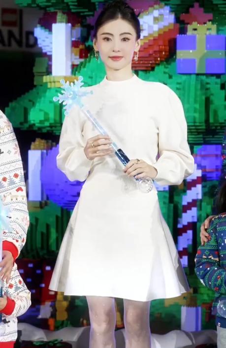 緊接著她把手里的玩具往鏡頭面前一遞,視頻進行了一個轉場,第二個場景下的她穿著一身潔白的裙子,看上去很年輕。