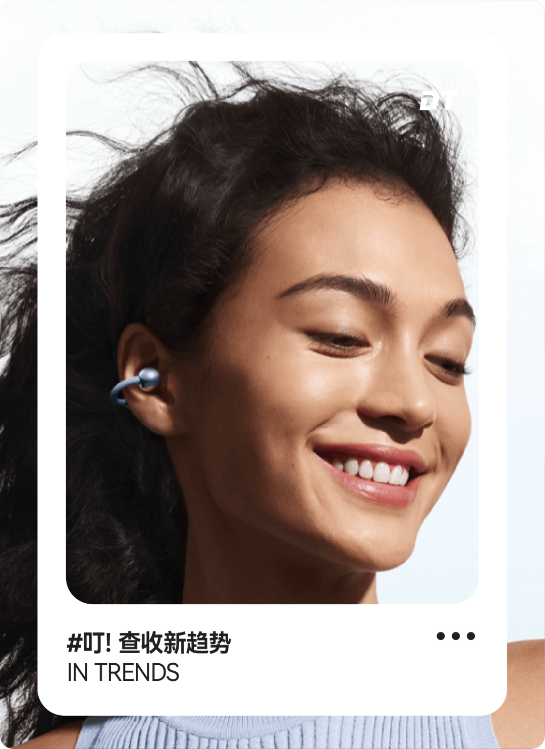 而耳夾式耳機(jī)相比頸掛式、耳掛式,在顏值上更勝一籌——戴在耳廓外側(cè)的設(shè)計,像耳飾一樣,成為年輕人裝點造型、彰顯品味的時尚單品。