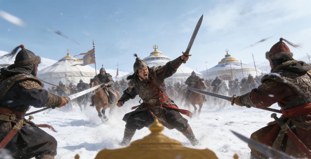 “不要停!直取金帳!”石雄大吼,刀鋒劃過一名回鶻百夫長的喉嚨,溫熱的血噴在雪地上,紅得刺目。