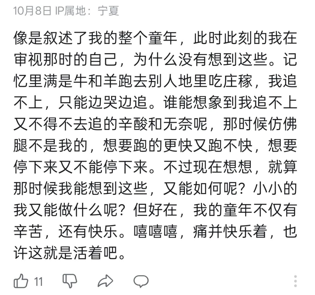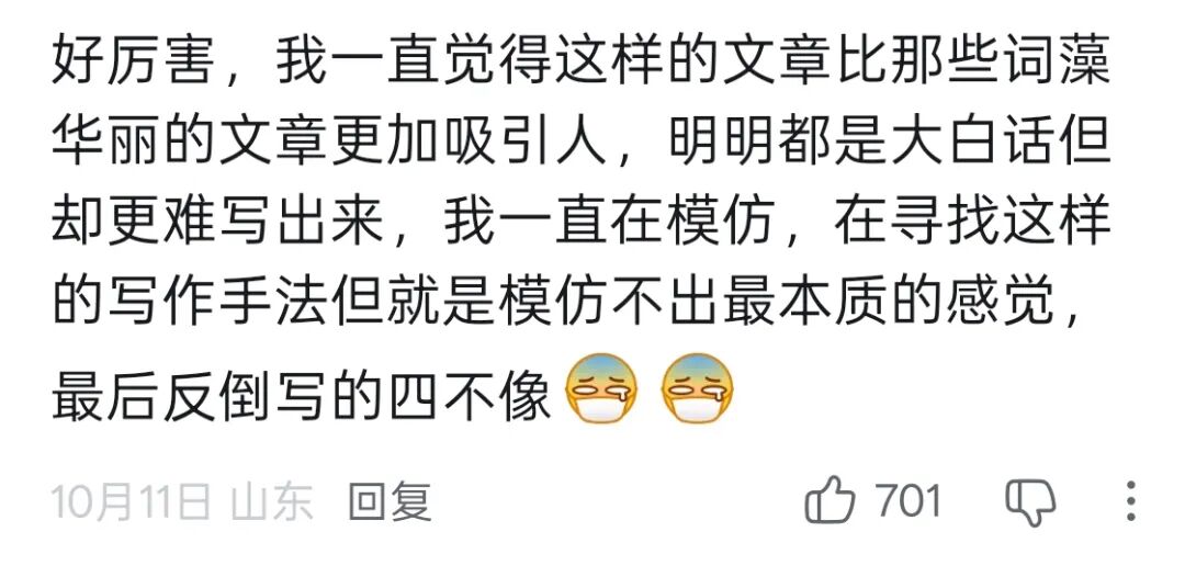 “up好會形容”“文學(xué)的最高級手法就是白描”“因?yàn)殚啔v是語文的一部分”……上萬條評論里,是來自天南海北的共鳴。
