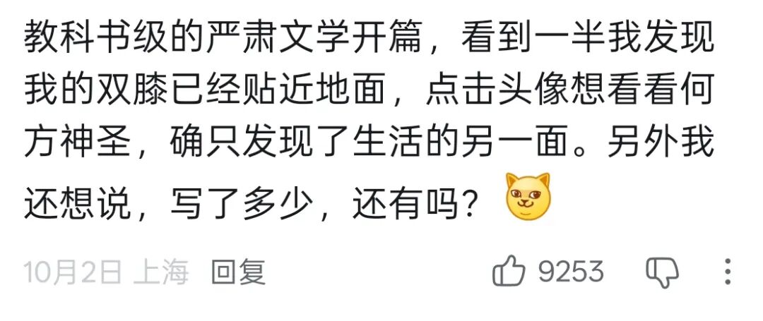 無數(shù)網(wǎng)友期待著她的“大文豪最新力作”,把她當(dāng)成自己的“賽博散文家”朋友,還說“村里出了個(gè)大作家”。