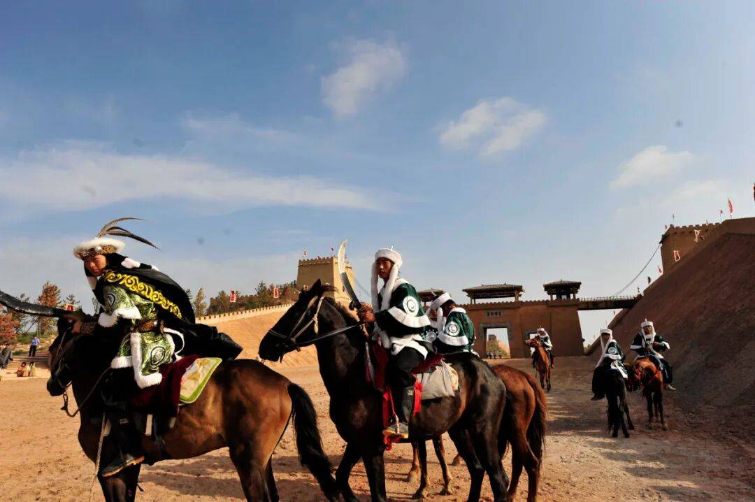 身穿民族服飾的馬隊(duì)在內(nèi)蒙古秦直道文化旅游景區(qū)內(nèi)(資料圖片)(新華社記者 劉勇貞 攝)