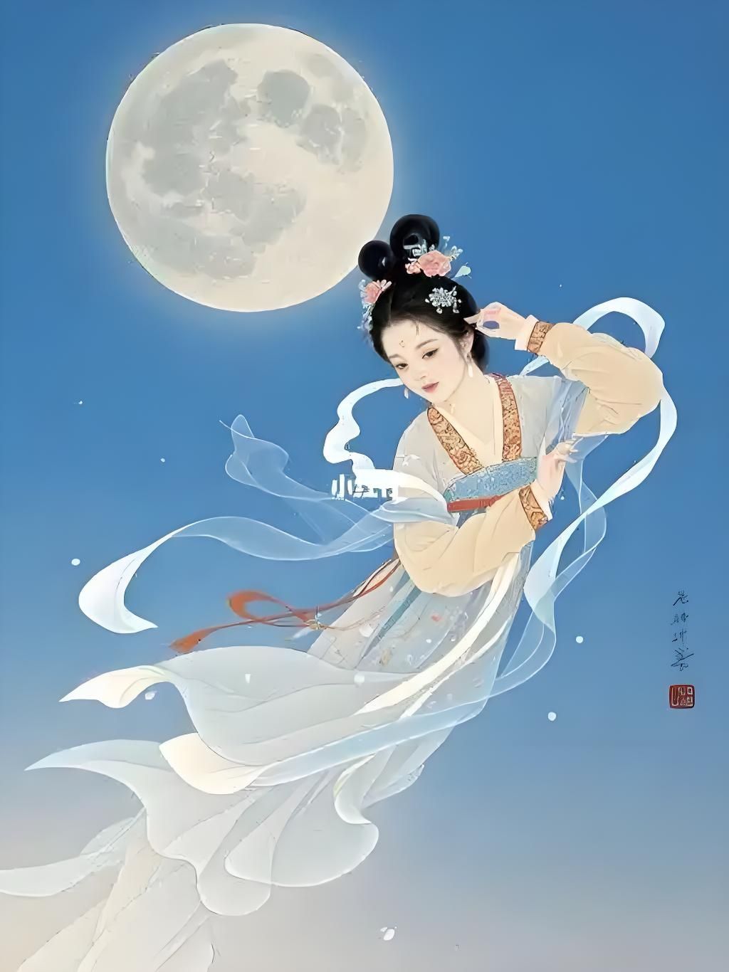 后來,后羿射日有功,西王母賜予不死仙藥,叮囑夫妻二人分食便可長生。嫦娥因擔憂后羿沉迷仙藥忽略人間百姓,又恰逢天庭召喚她回宮輔佐王母,兩難之下,只得獨自吞下藥丸。服藥當晚,月華灑滿大地,嫦娥的身體漸漸飄離地面,她回頭望向故鄉,眼中滿是不舍,尤其是看到山坡上那頭黑牛正仰頭悲鳴,淚水竟化作了山間的晨露。