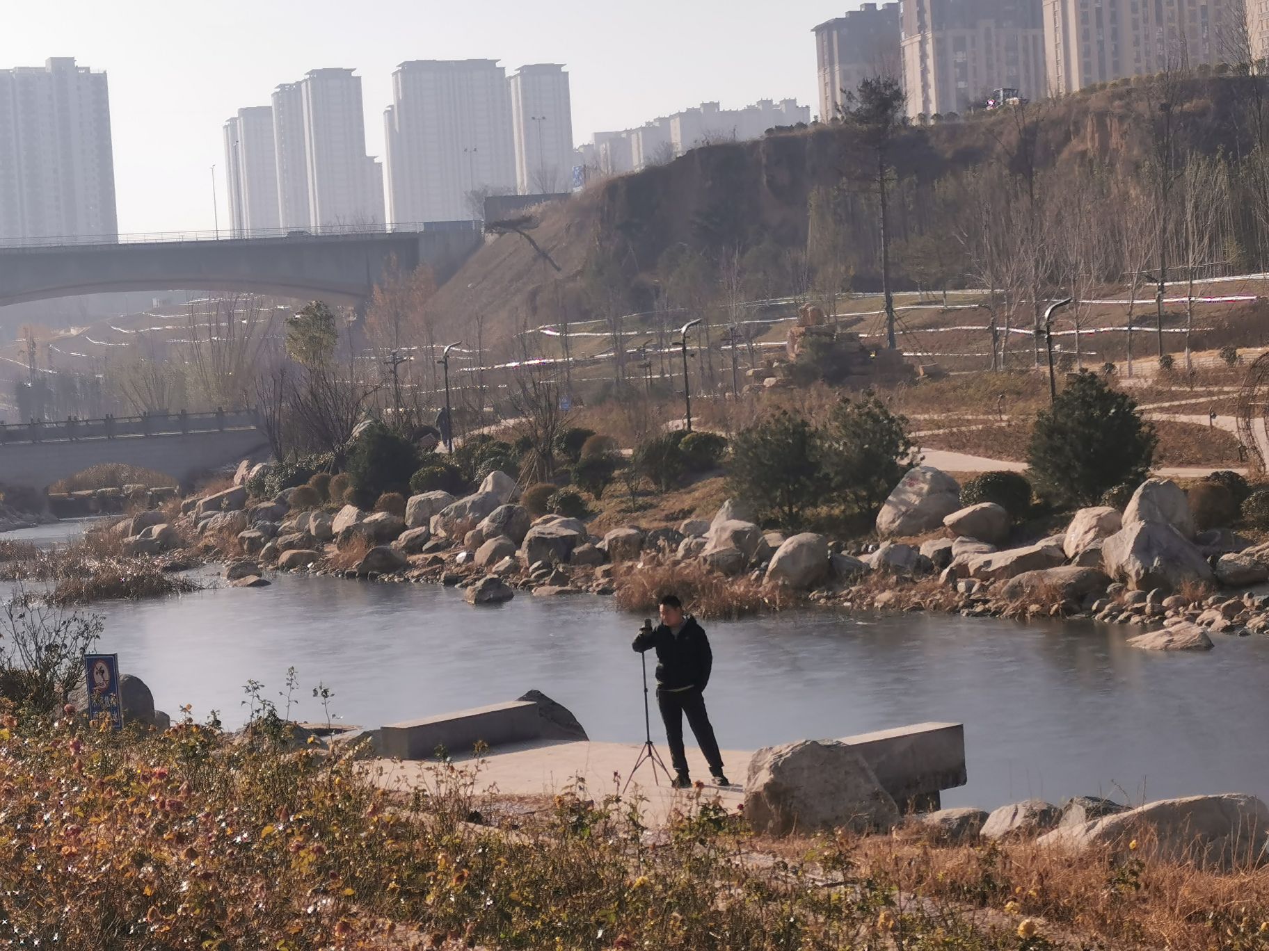 不遠處,一位年輕人架著手機與三腳架直播,神情專注對著鏡頭講解,鏡頭緩緩掃過枯葦、冰湖與橋影,聲音清晰有感染力,想必是要分享這份獨有的冬韻。路過游人偶爾駐足好奇一瞥,而后笑著前行,無人打擾這份專注,成了晨景中和諧的一筆。