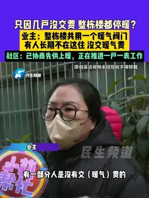 12月16日(發布)河南鄭州,只因幾戶沒交費 整棟樓都停暖?業主:整棟樓共用一個暖氣閥門,有人長期不在這住 沒交暖氣費,社區:已協商先供上暖,正在推進一戶一表工作(編輯:邢大運)