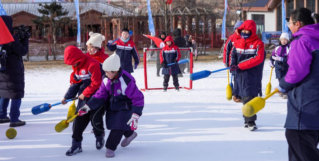 12月3日,吉林市第二實(shí)驗(yàn)小學(xué)學(xué)生在吉林市納美山谷度假區(qū)體驗(yàn)雪上軟式棒球。新華社記者 顏麟蘊(yùn) 攝