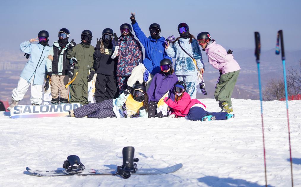 2025年11月22日,滑雪愛好者在吉林省吉林市中旅松花湖度假區(qū)合影留念。新華社記者 顏麟蘊(yùn) 攝