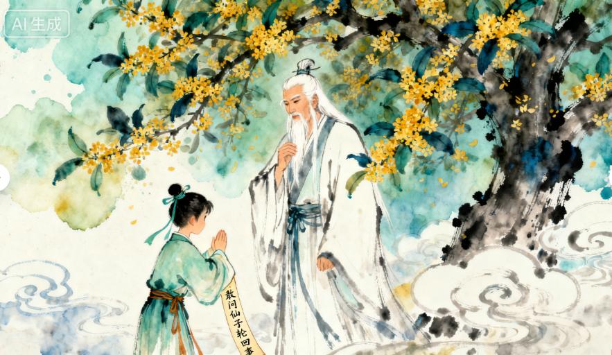 那天,太白金星站在月桂樹下,看著滿樹的桂花,不住地贊嘆。云芽鼓起勇氣,走上前拱手行禮:“太白金星爺爺,弟子有一事不明,想向您請教?!?