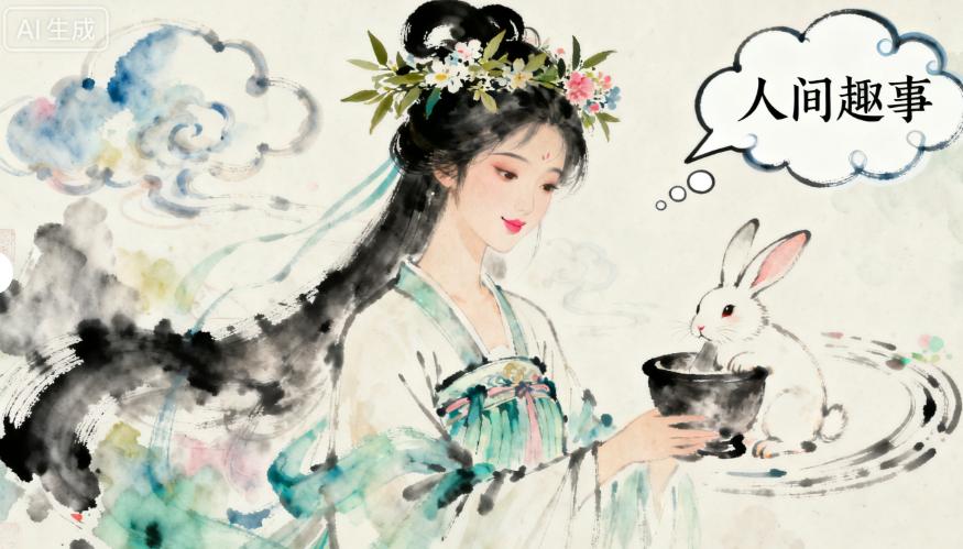 初到廣寒宮,云芽就被這里的清冷嚇了一跳。偌大的宮殿里,只有玉兔搗藥的 “咚咚” 聲,還有月桂樹隨風搖曳的 “沙沙” 聲,連個說話的仙都沒有。她遠遠看見宮殿正中,有位身穿素白長裙的仙子,正倚著欄桿,望著人間的方向,身影單薄得像一片隨時會被風吹走的云。仙官告訴她,那就是嫦娥仙子,已經在廣寒宮住了幾千年。?