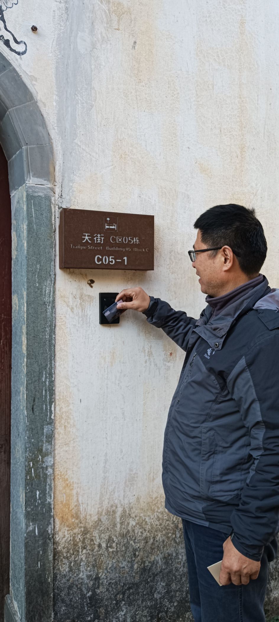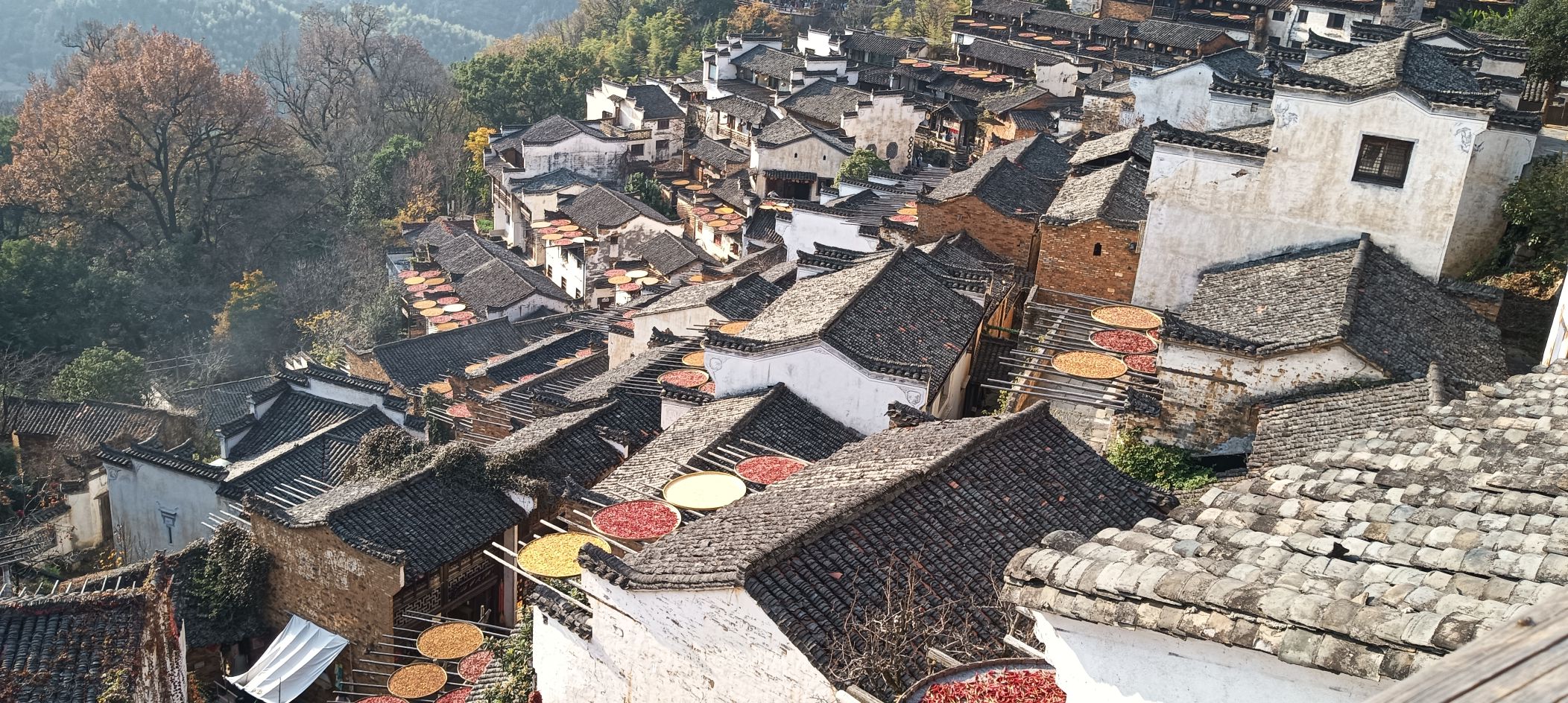 曹總驅車帶我們盤旋上山,一路山風拂面,綠意滿眼,不多時便抵達天街。在游客中心辦妥民宿入住手續,走出電梯的剎那,古色古香的徽派建筑便撞入眼簾,黛瓦粉墻、飛檐翹角,瞬間讓人跌入江南古韻里。順著青石板路緩步前行,一棟歷經五百年風雨的古樓便是我今夜的棲身之所。兩扇厚重的古木門,不見傳統銅鎖,刷一下房卡便能輕推而入,外墻“外面五百年,里面五星級”的字樣格外醒目。踩著小巧的旋梯而上,再刷一次房卡進入客房,寬敞舒適的布局讓人一掃旅途疲憊。推開窗,青山如黛、流水潺潺,五色斑斕的農家曬秋景致盡收眼底,原來篁嶺的美,遠不止曬秋這一幅畫卷。