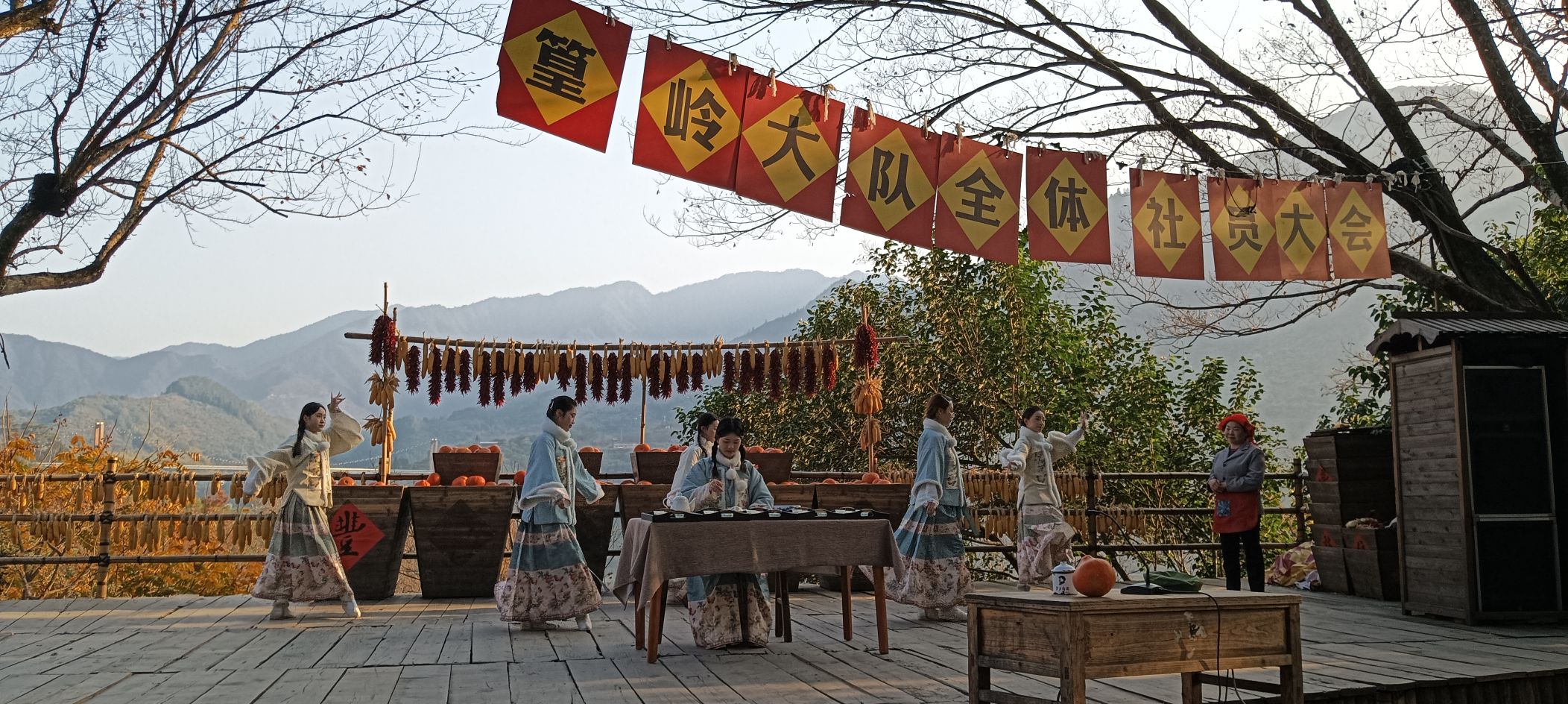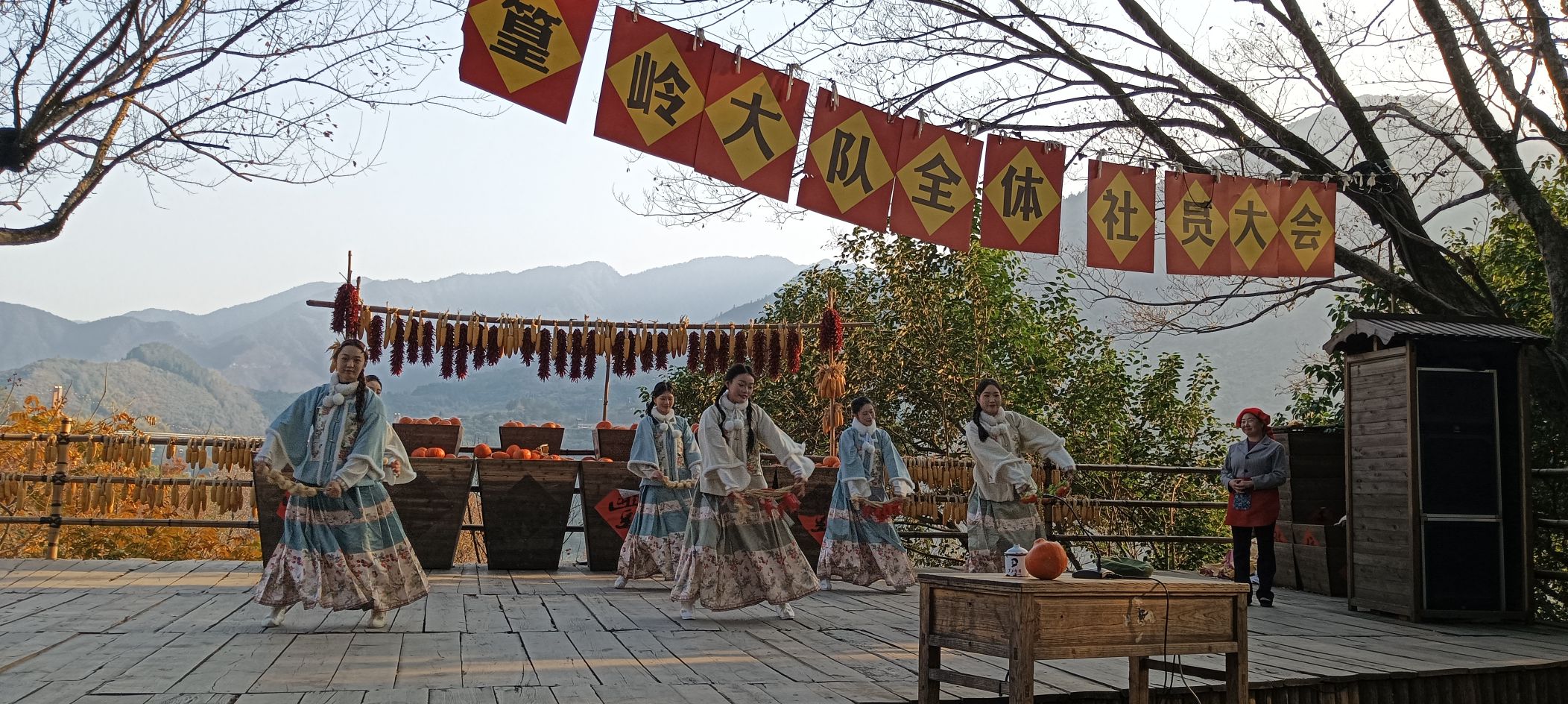 盡興游玩之后,我們專程前往篁嶺郵局,精心挑選了《篁嶺美景》與《篁嶺曬秋》明信片、紀念封各三套。拿著明信片,我們循著畫面中的景致一一尋訪實景,在青山秀水間拍照打卡,讓方寸卡片與真實山水相映成趣。之后,在董總的陪同下,我們又一次來到篁嶺祠堂廣場,一場精彩的茶藝迎賓表演拉開帷幕,茶藝師們行云流水的沖泡技藝,茶香裊裊間盡顯東方雅致;緊接著的曬秋表演更是熱鬧,村民們將曬匾里的紅辣椒、黃玉米、橙南瓜擺出別致造型,歡聲笑語里,滿是豐收的喜悅。表演落幕,我們又觀看了《篁嶺涅槃重生》的電視宣傳片,透過鏡頭,讀懂這座古村從沉寂到煥新的蛻變歷程。