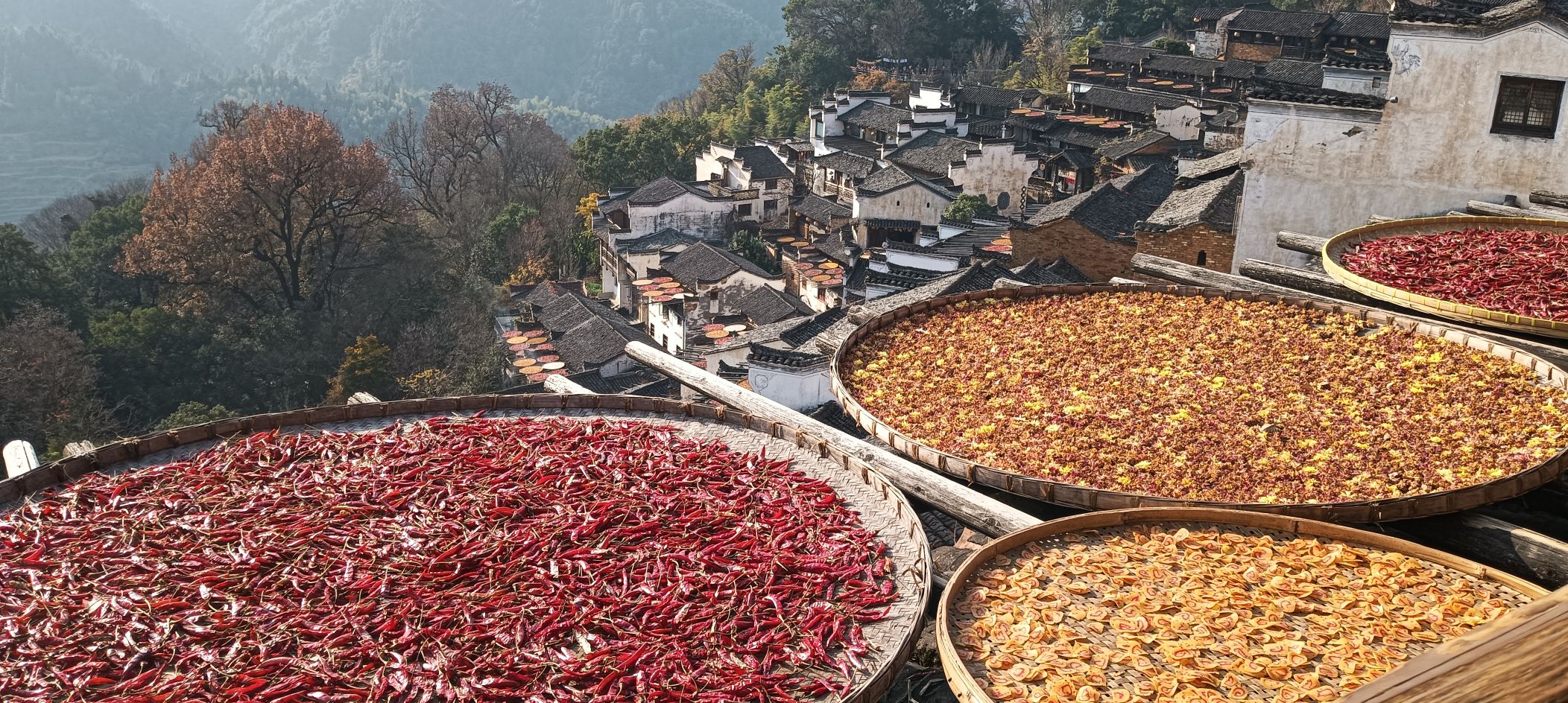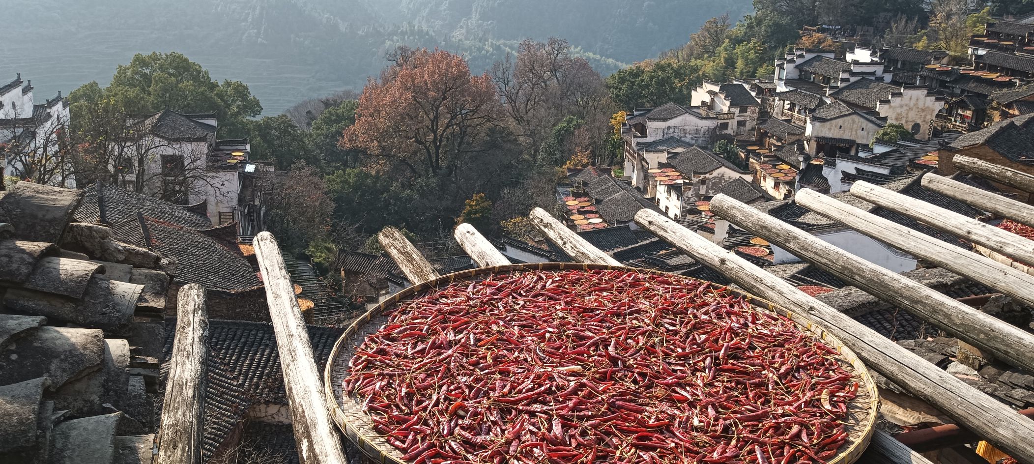 篁嶺坐落于海拔500米的大山山腰,數百棟徽派古民居依山而建,錯落有致,天街恰似一條玉帶,將這些粉墻黛瓦的經典古建串聯在一起。作為篁嶺最繁華熱鬧的商業一條街,這里藏著說不盡的徽州韻味:精巧絕倫的石雕、磚雕、木雕工藝隨處可見,硯莊、繡坊、篾鋪、驛站等古色古香的商鋪沿街排布,民俗文化在此交織薈萃,活脫脫一幅縮小流動版的《清明上河圖》。天街更融入著篁嶺人家生活的點點滴滴,于細微末節處便能體現出它的與眾不同。