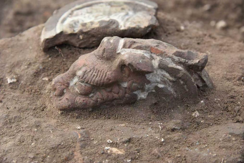 據了解,本年度發掘出土遺物主要出自基址上的倒塌堆積,出土遺物多為建筑材料,包括陶板瓦、筒瓦、瓦當、滴水、脊獸、磚,以及石螭首、欄桿構件等。陶建筑材料多有琉璃器,以綠色琉璃為多。瓦當、滴水紋飾以龍紋為主,鳳紋為次。其他遺物中可見大量殘塑件,應是建筑或佛像上的裝飾品。